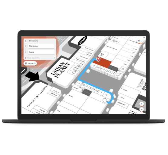 Mappedin’s web wayfinding offers accurate turn-by-turn directions optimized for both desktop and mobile users. Simply enter a start and end location to receive tailored directions that take factors like accessibility into account. With the ability for a mall manager to edit maps in real-time, visitors can rely on accurate turn-by-turn directions.
